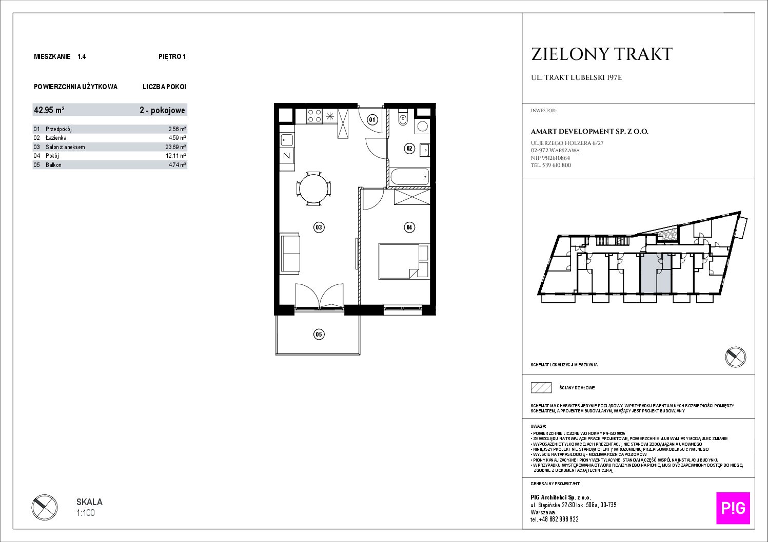 - Metraż: 42,95 m²